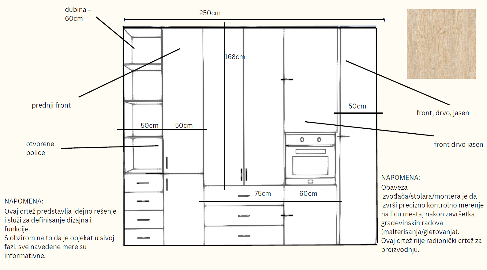 *Napomena: Entas Quick Pick nudi idejno rešenje i dizajnersku viziju. Projekat ne sadrži radioničke crteže za proizvodnju (koje izrađuje majstor na osnovu mojih mera) niti projekte elektro i vodovodnih instalacija. U cenu su uključene 2 runde korekcija za odabrane dodatke (nebitno je da li ste odabrali 1 ili 5 dodataka – broj korekcija je ukupno 2).